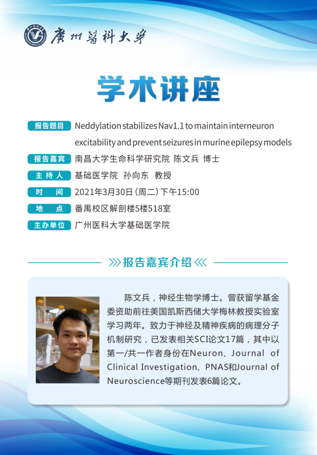 学术讲座--Neddylation stabilizes Nav1.1 to maintain interneuron excitability and prevent seizures in murine epilepsy models